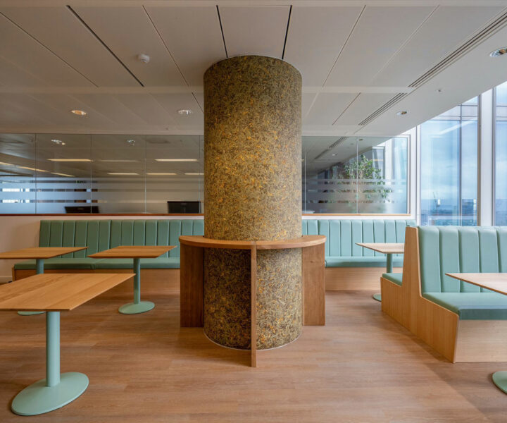 Geschickt eingesetztes Oberflächendesign macht an dieser Säule im Shard in London den entscheidenden Unterschied: Die Kitchenette von Mathys & Squire wurde mit der Oberfläche RELAX von ORGANOID neu gestaltet. Und zwar auf sparsame und umweltschonende Weise: Dank der natürliche Oberfläche konnte der Raum ohne größere Umbauten in einen Ort innerer Ruhe und Wohlbefindens verwandelt werden.